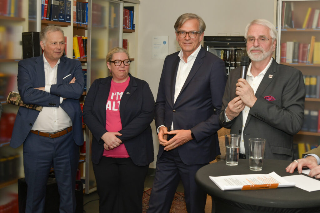 Erst mal ein Blick ins Publikum. Das Fest fand in den Räumen von jorda & partners statt. Das ist nur ein kleiner Ausschnitt, hinter dem Fotografen stehen nochmal so viele Gäste.